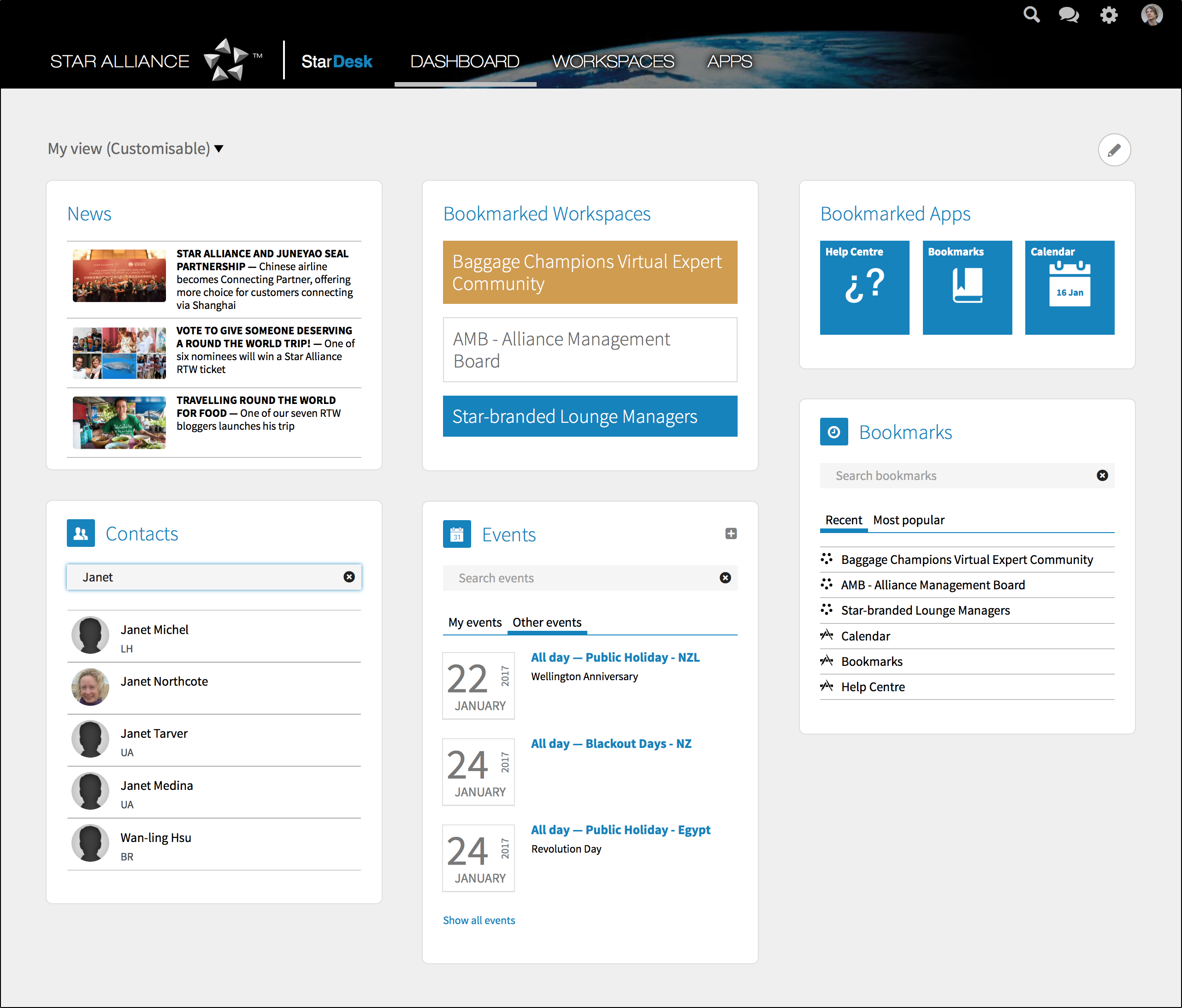 This is the updated Dashboard. You can add bookmarks to the Dashboard to create shortcuts to your most important places.